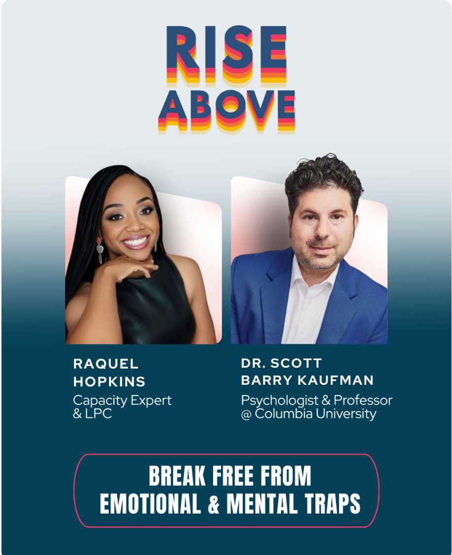 Want to break free from emotional and mental traps? I’m partnering with the capacity expert RaQuel Hopkins to bring you RISE ABOVE, a 6-week psychological experience about learning how to lead yourself instead of managing yourself. Instead of managing thoughts, managing emotions, managing reactions — you’ll develop an internal steadiness that makes your self-leadership feel natural.